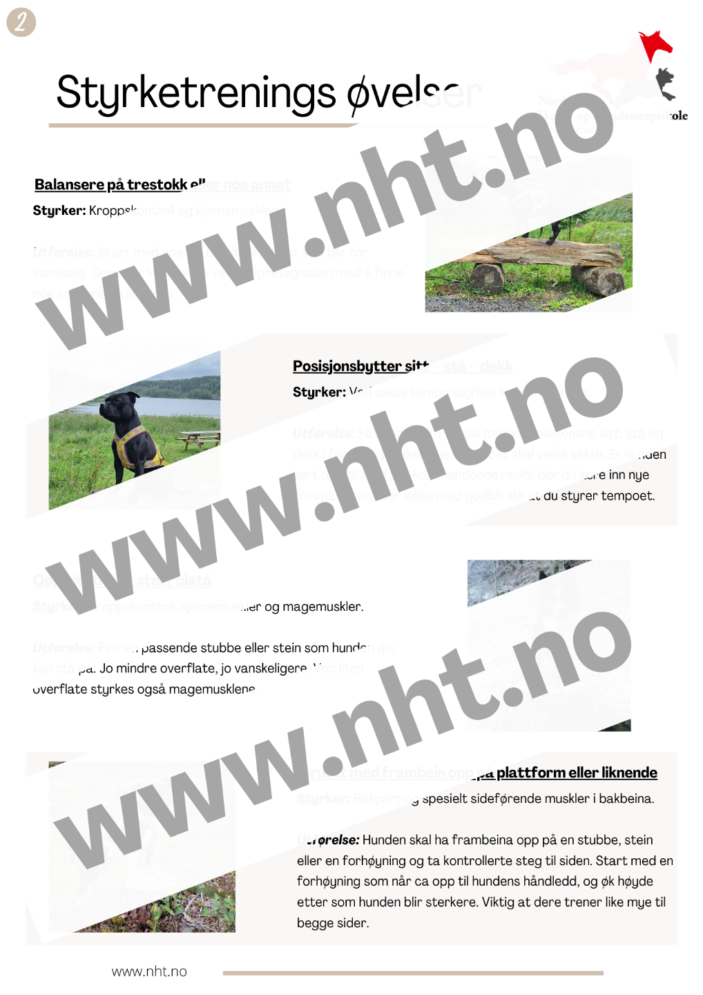 Det er tilsammen 8 øvelser med god forklaring på øvelsene som kan være nyttige for alle som besøker hundeparken/hundesenteret.